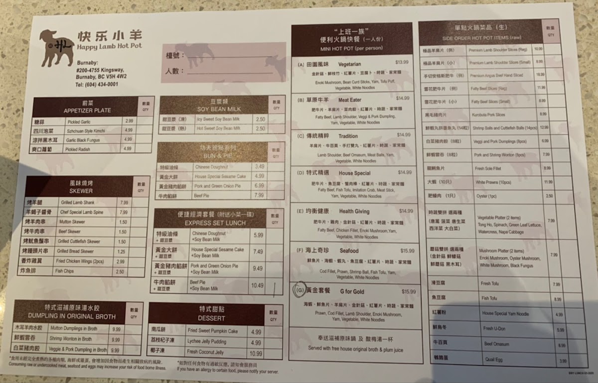 Welcome to Happy Lamb Hot Pot, Burnaby, where a delightful culinary experience awaits you at 4755 Kingsway, Burnaby. This all-you-can-eat haven has earned rave reviews for its fresh, high-quality ingredients, diverse broths, and exceptional service. Diners can indulge in a rich selection of meats, seafood, and vegetarian options, ensuring everyone finds something to enjoy.